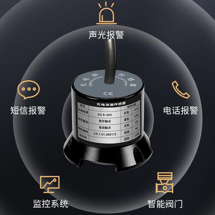 YCH-SMDT光電泄漏傳感器采用光電檢測(cè)原理。結(jié)構(gòu)為全密封設(shè)計(jì),外殼采用合金材質(zhì),材質(zhì)外部采用電鍍加工工藝,內(nèi)部電路封膠處理,可以達(dá)到防爆、防塵、防水等三防的作用,電子元器件受環(huán)境因素影響小,保證了產(chǎn)品的高精度及可靠性。產(chǎn)品具有靈敏度高,響應(yīng)時(shí)間快,使用方便,便于安裝等特點(diǎn)。