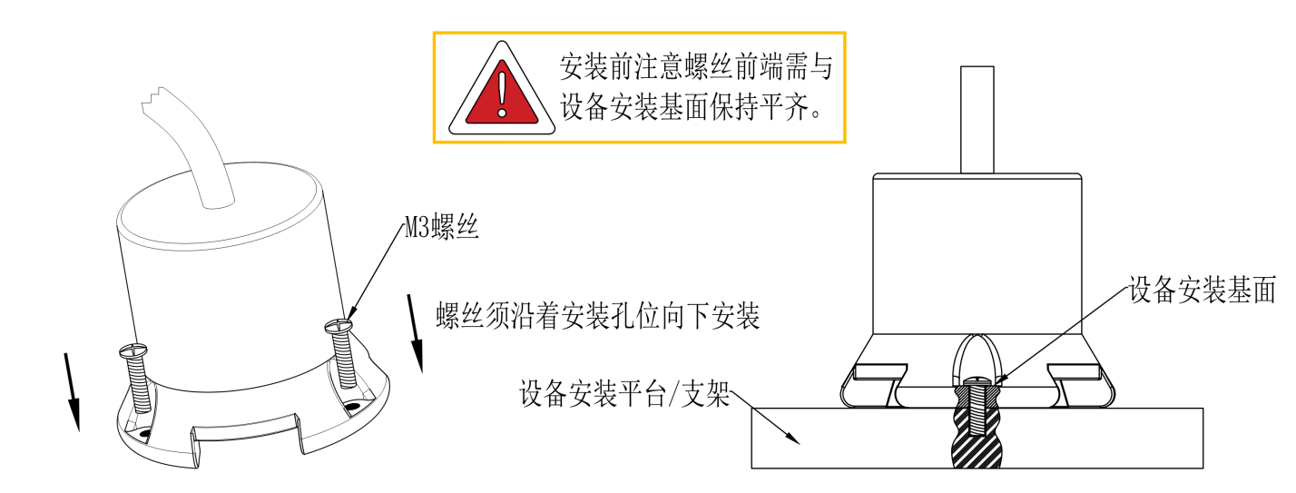 YCH-SMDT 傳感器使用螺絲固定定位孔安裝,安裝螺絲規(guī)格為M3。請(qǐng)將控制器安裝于牢固的地板、支架或水槽等處。安裝方式如下: