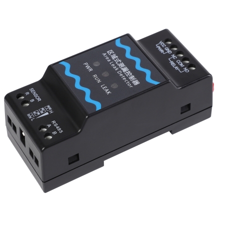 控制器與感應線連接,感應線敷設于漏液檢測區(qū)域,當液體發(fā)生泄漏時,觸發(fā)控制器報警及繼電器動作,通過RS485 信號上傳泄漏情況數據至監(jiān)控平臺,實現(xiàn)實時集中監(jiān)控。控制器繼電器輸出信號可聯(lián)動控制外圍設備如聲光報警器、電話撥號器、短信模塊、開關量采集模塊等設備。
