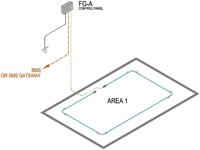 實時監控場所內水浸情況,在所需檢測的場所內鋪設漏水感應線,當有水接觸到感應線后,控制器工作,給出報警信號,讓值班人員及時檢查,有效的避免浸水帶來的損失。